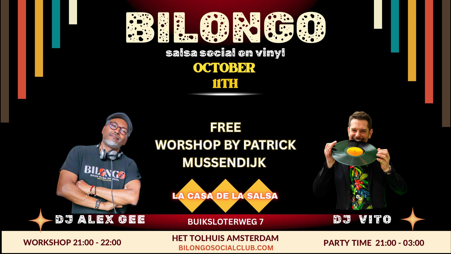 Bilongo Social Club is born as the result of the partnership of DJ AlexGee and DJ Vito. True melomaniacs and avid collectors, Alex Gee and Vito created Bilongo Social Club with the intention to share their passion and view for Latin music. The experience for the dancers is the main subject in Bilongo, joining as such a historical building from the XIX century with the warm sound of a vinyl on a superb sound system. This creates the perfect equation where both beginners and advanced dancers can equally enjoy.